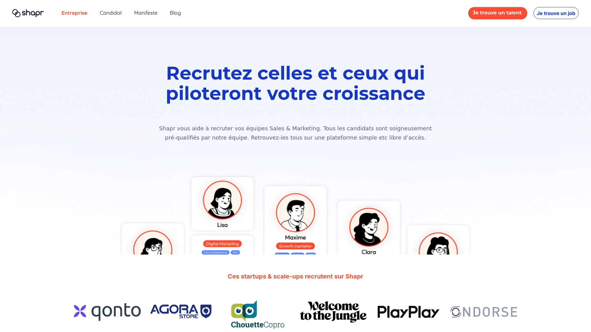 Shapr helps startups and scale-ups recruit sales and marketing teams fast by matching you with pre-qualified candidates and providing personalized support. The platform trades high agency fees for a pay-on-success model that aims to fill roles within 30 days.