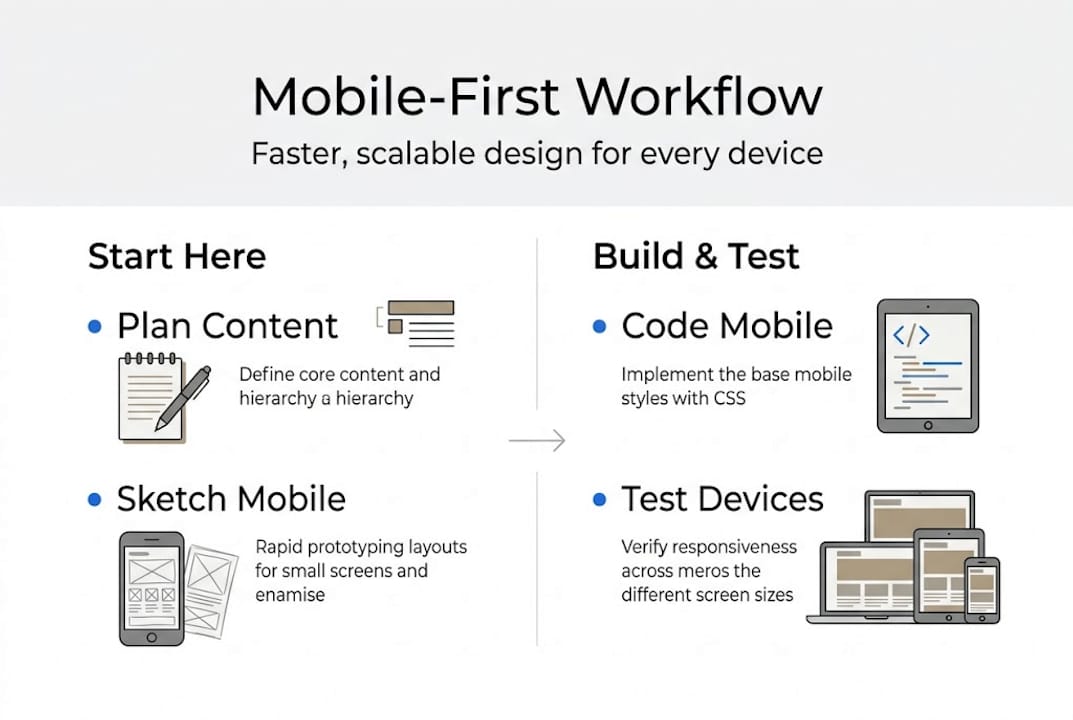 It is a process that ensures your website automatically adapts to different screen sizes. A mobile-first responsive workflow starts with the smallest screen and progressively enhances for larger devices.