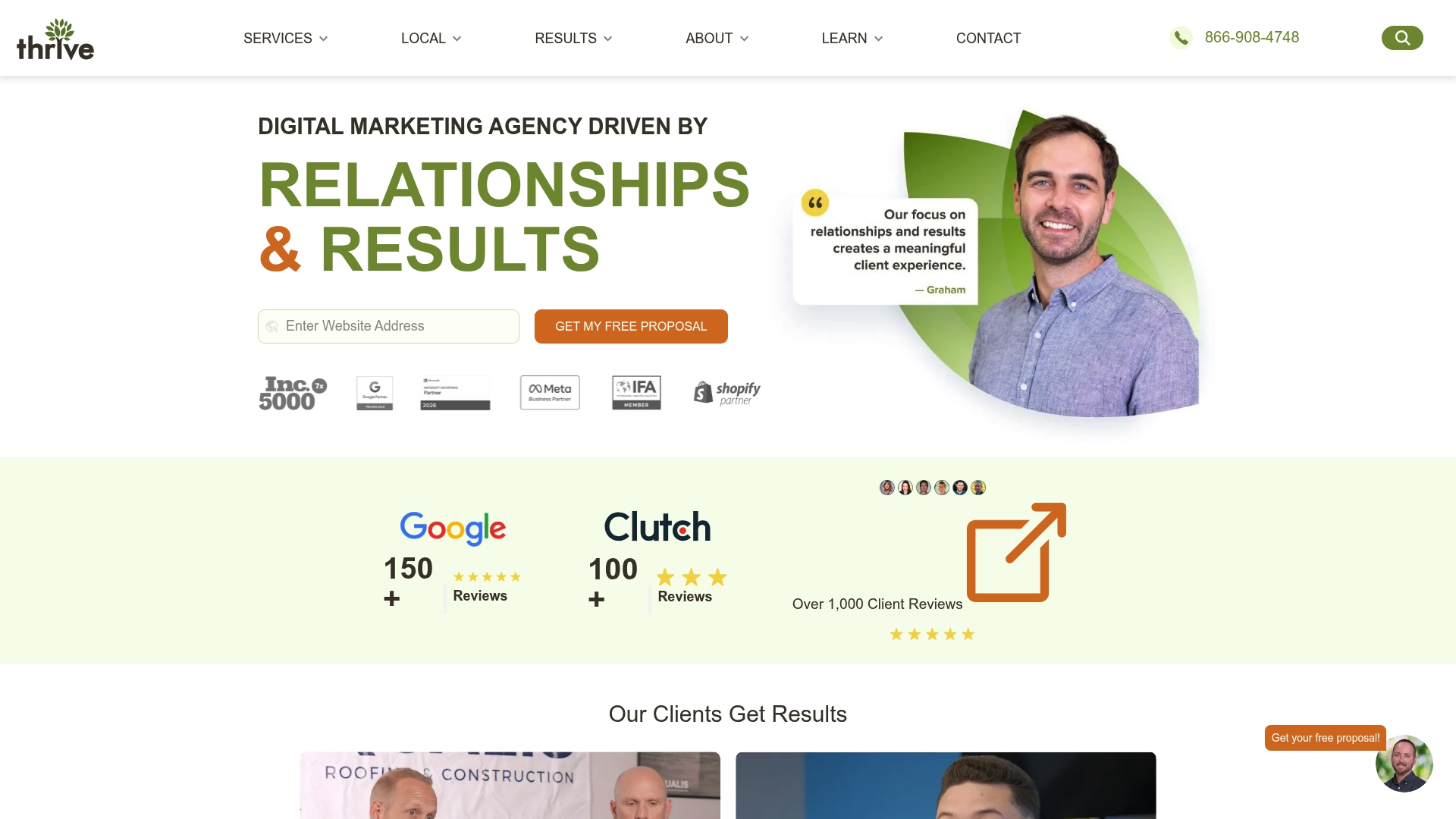 - Proven results: Thrive reports large gains such as a 427 percent increase in top 10 organic keywords and 1258 percent lead growth over five years for clients.