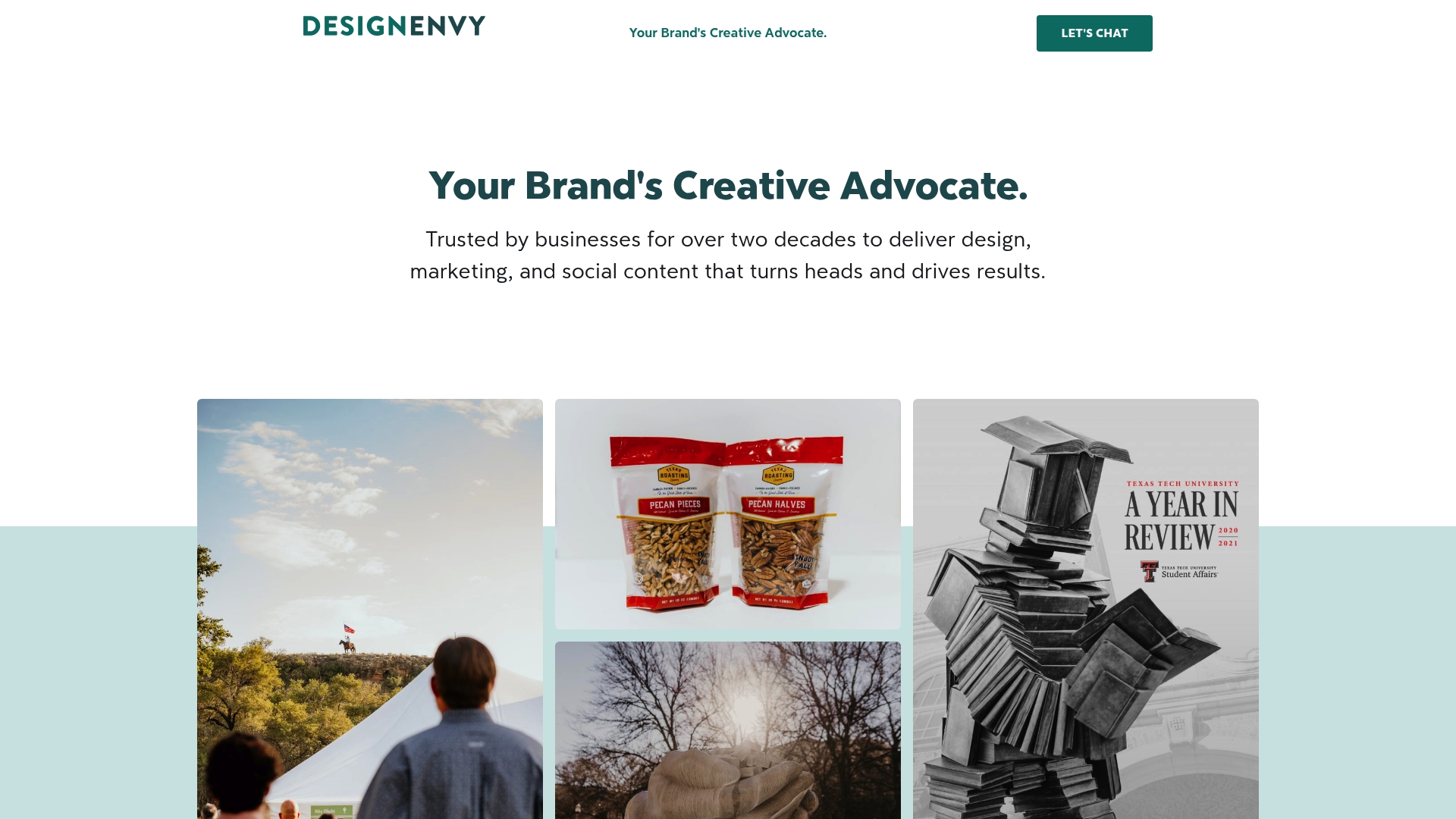 DesignEnvy brings a mix of strategic planning and content production geared to support brand growth and day to day marketing needs. The team covers end to end creative work with both management and project based offerings.