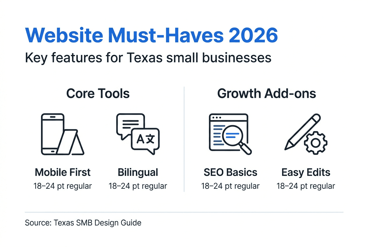 The 8 things every small business website needs guide emphasizes that responsive layouts aren't optional anymore. They're the baseline for staying competitive in Texas markets where customers expect seamless experiences whether they're searching from their truck or their office.